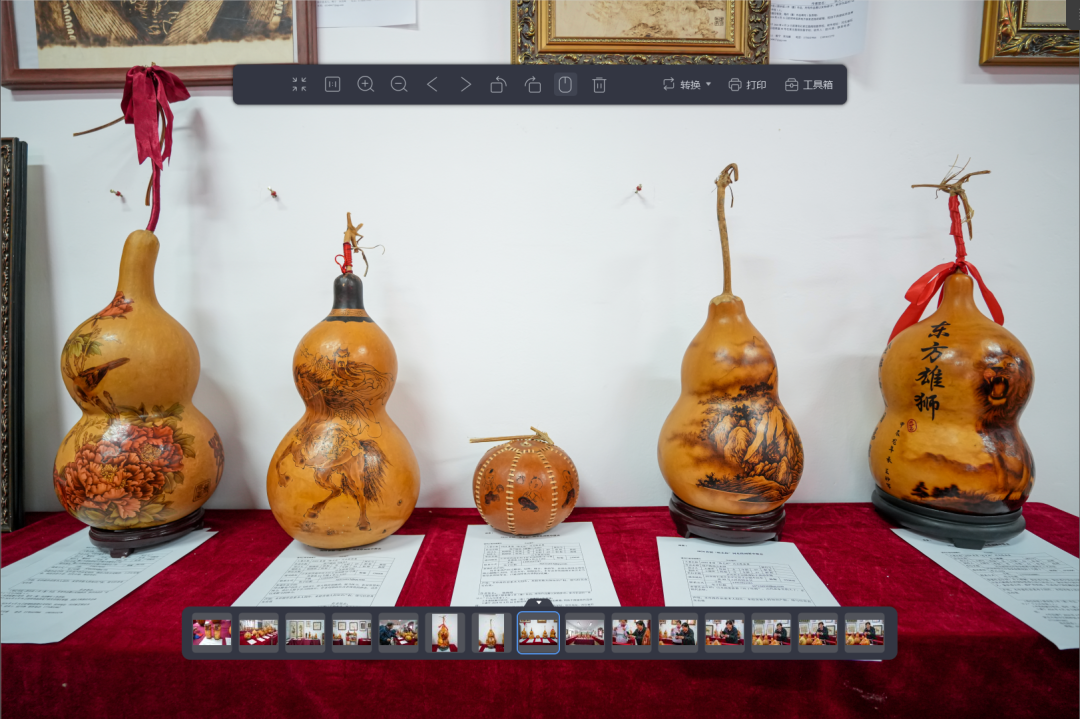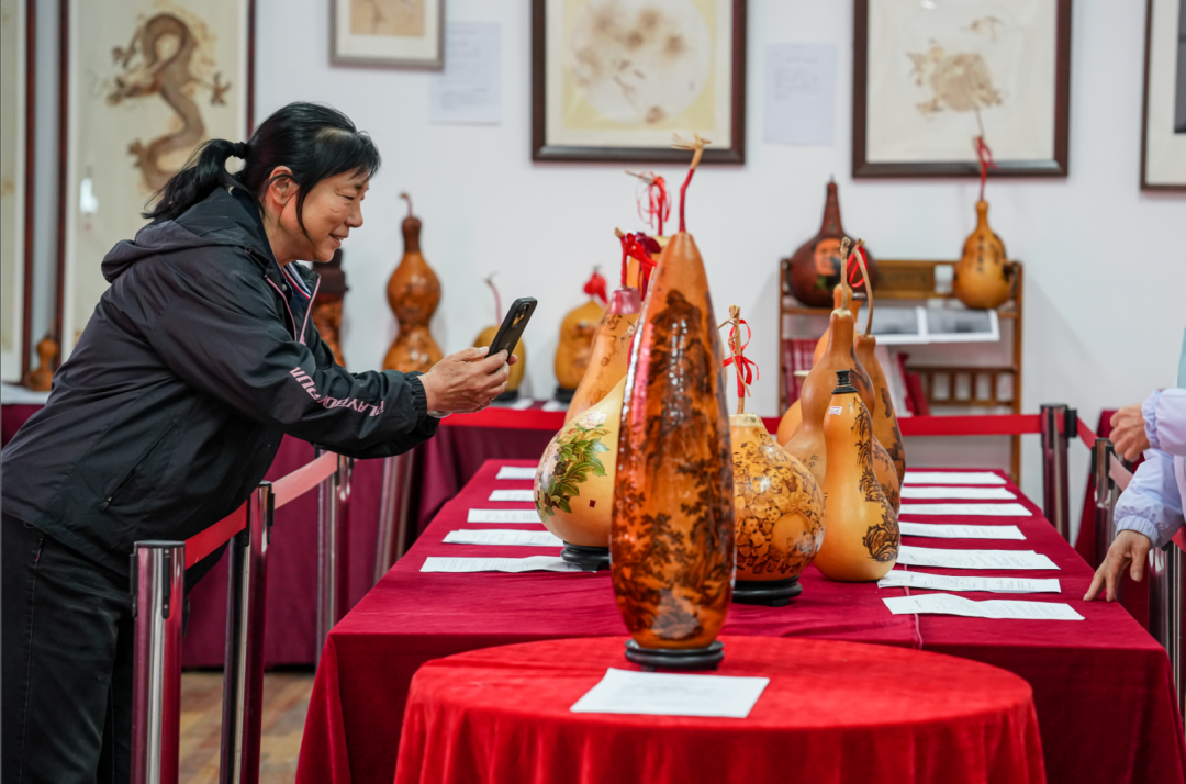 众多工艺美术界颇具影响力的专家领导齐聚此次盛会。出席此次盛会的专家领导有中国工艺美术协会原副会长李平思、中国工艺美术大师郭海博、中国工美行业大师郝友友、河北省工艺美术协会常务副会长兼秘书长王巍、河北省工美协会传统艺委会秘书长王相君、河北工美协会烙画专委会执行会长宋兆峰以及河北工美协会烙画专委会秘书长鲍宁,我校党支部书记万风珍、校长赵飞虎、副校长张温、副校长马永明、副校长张峥,醉墨斋书院院长陈志刚等。 此次烙画专业展,集合了全国各地烙画大师,包含新疆、内蒙、云南、山西、河北、河南、山东、黑龙江、吉林、辽宁、江苏、广东、广西等地数十位烙画家三百余件作品,集中展示了众多优秀的烙画作品,展现了烙画艺术的独特魅力和丰富内涵。参展作品题材广泛、风格多样,既有传统的山水、花鸟,也有现代的人物、抽象等,材料也涉及竹、木、皮、纸、丝绢、葫芦等等材质,展现了烙画艺术家们的精湛技艺和独特创意。