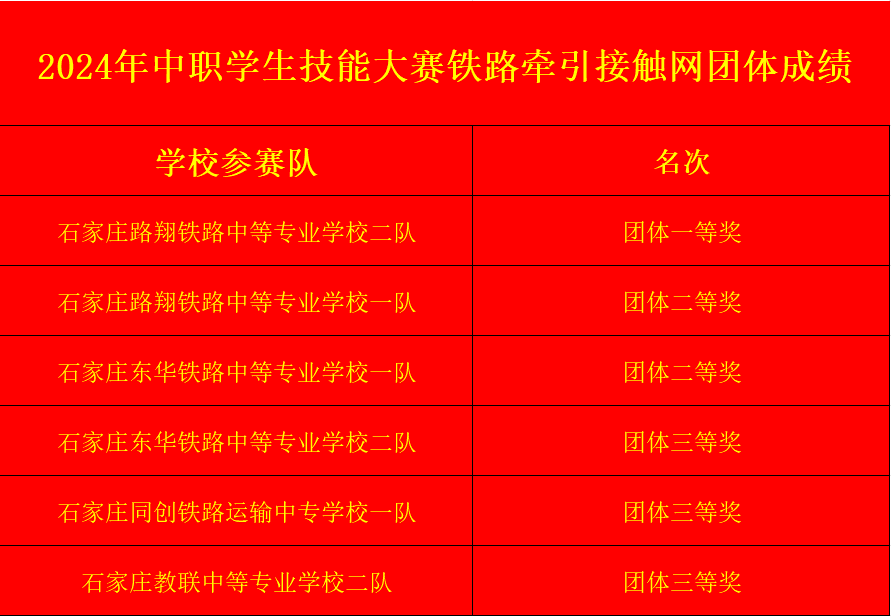 团体二等奖:石家庄路翔铁路学校一队、石家庄东华铁路学校一队