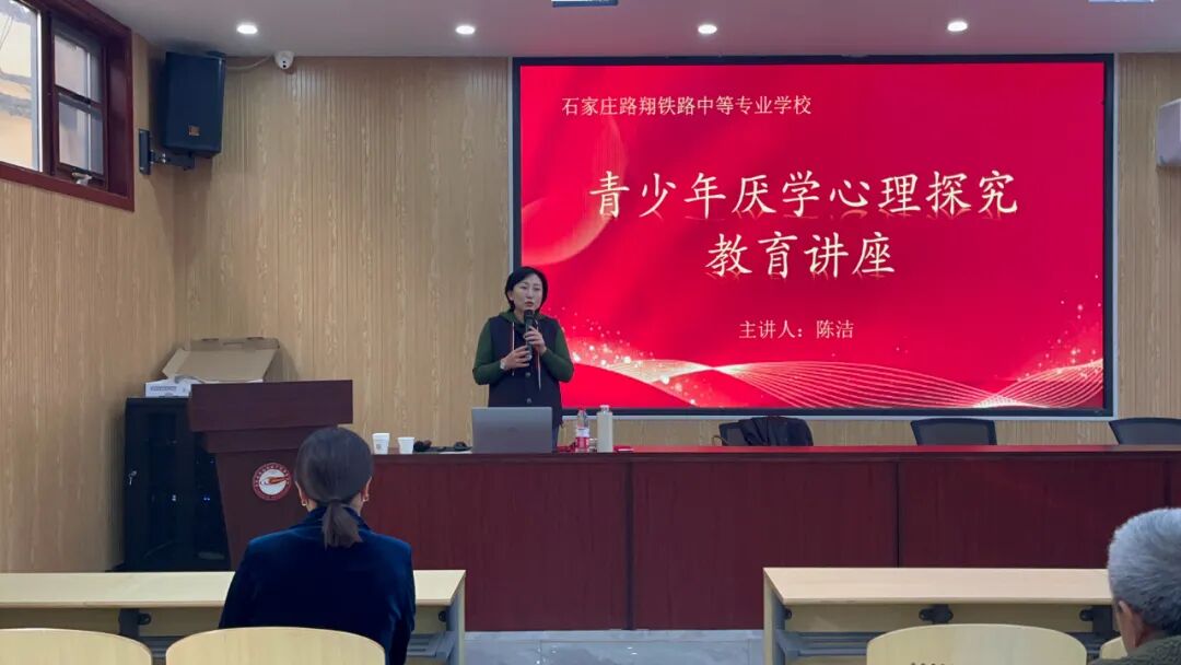 2024年11月8日下午,我校邀请了清华大学积极心理实践指导师、国家二级心理咨询师、河北心理咨询师协会会员、全国教育行业先进工作者、河北省师德标兵、石家庄市心理健康教育先进个人、石家庄市十大杰出青年教师、石家庄市青年拔尖人才陈洁老师做了《青少年厌学心理探究》的专题讲座。